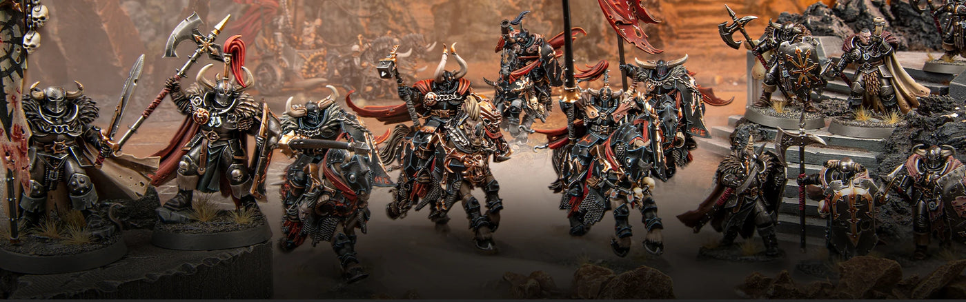 L’armée des Slaves to Darkness est une incarnation vivante des puissances de la ruine : brutale, rapide, et impitoyable. Chaque unité est une offrande en marche vers l’apothéose ou la damnation.